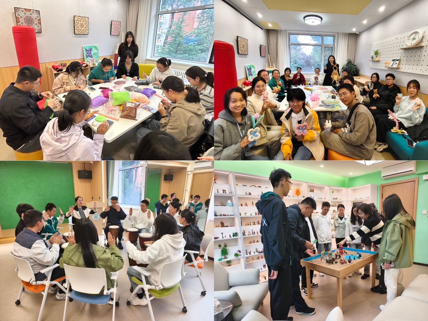 在第34个“世界精神卫生日”到来之际,大连理工大学第十八届“10·10心理文化月”于10月10日在主校区心理中心正式启动。作为文化月的首场活动,心理中心开放日以“人人享有心理健康服务”为主题,设置七大体验区域,300余名师生参与体验,在互动中学习心理调适方法,感受心理服务的温度。 在“沙海寻梦”沙盘区内,同学们在杨晓老师的引导下构建出属于自己的心灵图景;在“黏土心世界”手工区,刘倩老师带领大家揉捏黏土,在创作中释放压力;在“心鼓相和”艺术团体区,王丹老师与同学们一起敲击非洲鼓,在节奏互动中传递快乐,打破隔阂;“扭出心花”创意工坊中,应兆升老师与张欣怡老师共同指导同学们用扭扭棒创作作品,缓解焦虑情绪,收获积极体验。自助心理训练区同样人气高涨,仿真运动健身室、VR心理训练室、深睡小屋等科技空间有序开放,健心员们耐心引导,热心服务,师生们在科技辅助中放松身心、调节情绪。 此外,心理中心邀请大连市第七人民医院的主任医师们开展心理沙龙和医生进校园活动,加强医校协同,守护师生心理健康。在“告别失眠:从成因到对策”心理沙龙中,王骞医生从失眠成因入手,结合典型案例,深入浅出地讲解科学助眠技巧。单春杰、董晔医生为师生提供一对一的咨询辅导。 开放日活动通过“体验+咨询+科技”的模式,让师生在互动中掌握心理调适技能,也让“人人享有心理健康服务”的理念进一步落地,为文化月系列活动拉开温暖序幕。“10·10心理文化月”将持续推出心理知识擂台赛、团体辅导、健心大讲堂等系列活动。心理中心将继续以需求为导向,创新服务形式,为师生提供更温暖、更专业的心理支持与服务。